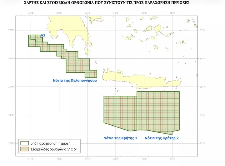 Η ExxonMobil από κοινού με την Helleniq Energy, υπενθυμίζεται, έχουν τα δικαιώματα έρευνας σε άλλες δύο μεγάλες θαλάσσιες περιοχές, δυτικά και νοτιοδυτικά της Κρήτης.