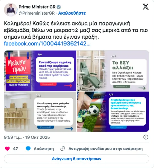 Αναλυτικά η ανάρτηση του πρωθυπουργού: