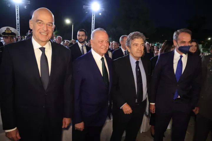 Ο πρωθυπουργός εμφανίστηκε με μάσκα λόγω κορωνοϊού στην εκδήλωση και έκατσε δίπλα στον Νίκο Δένδια. Στην εκδήλωση παρευρέθηκαν εκτός από τον πρωθυπουργό πλήθος υπουργών και βουλευτών.