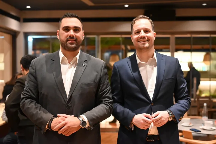 Ο Νίκος Πατσέας (δεξιά) με τον απερχόμενο πρόεδρο ΔΕΕΠ Α' Θεσσαλονίκης ΝΔ, Θοδωρή Μητράκα