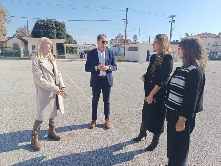 Η περιοδεία συνεχίστηκε στα σχολεία της περιοχής. Στο 1ο Δημοτικό Σχολείο συναντήθηκε με τον διευθυντή Νίκο Ταουσιάνη, με τον οποίο συζήτησε για την εφαρμογή του προγράμματος ανακαίνισης σχολείων «Μαριέττα Γιαννάκου». Στη συνάντηση που ακολούθησε με τη διευθύντρια του 2ου Δημοτικού Σχολείου Καλλιόπη Κωνσταντίνου αντάλλαξαν απόψεις σχετικά με τη χρήση ψηφιακών εργαλείων στην εκπαίδευση και την ανάγκη ενεργειακής αναβάθμισης των σχολικών μονάδων.
