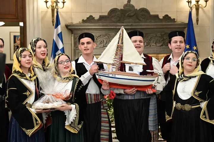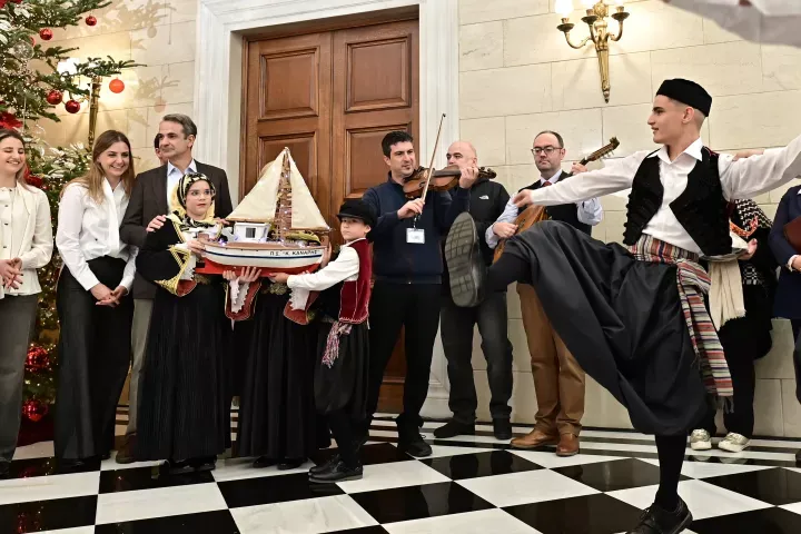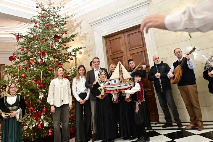 Ο πρωθυπουργός με τη σύζυγό του και τα παιδιά τους αντάλλαξαν μαζί τους ευχές και δώρα για τις γιορτές. Ανάμεσα στα δώρα που έκαναν στον πρωθυπουργό ήταν ένα γούρι και ένα καράβι.