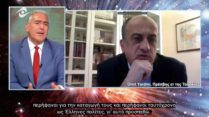 Πρέσβης ε.τ.: Ναι, νομίζω ότι αυτή η έννοια ισχύει ως επί το πλείστον, και το καλύτερο παράδειγμα είναι η Θράκη, όπως είπατε. Οπότε, φυσικά, γνωρίζω απόλυτα τι λέει η Συνθήκη της Λωζάννης για την έννοια της μουσουλμανικής μειονότητας. Αυτό είναι σαφές, το ξέρω. Αλλά σε αυτό το ερώτημα, όσον αφορά τους Έλληνες συναδέλφους μας τις περισσότερες φορές, φυσικά, εννοώ, ως θρησκεία, αλλά τι γίνεται αν αυτός ο μουσουλμάνος πολίτης είναι άθεος; Δεν επικρίνω λοιπόν τη Συνθήκη της Λωζάννης. Είναι ένα βασικό εργαλείο που έχουμε. Επειδή στην Τουρκία, τα προηγούμενα χρόνια, κάποια κοινή γνώμη, κάποιοι περίεργοι άνθρωποι, την απέρριψαν πριν 100 χρόνια. Όχι.. Είναι ένα βασικό εργαλείο που όλοι πρέπει να σεβαστούμε. Πυλώνας... Είναι ο πυλώνας μας. Είτε είναι άθεος είτε όχι. Οπότε ναι, μουσουλμανική μειονότητα. Αλλά φυσικά έχουν και ethnic (εθνοτική) ταυτότητα. Στην Κωνσταντινούπολη, αν υπάρχει κάποιος πολίτης ορθόδοξος ή οποιασδήποτε άλλης θρησκείας, δεν μπορώ να αντιταχθώ, αν λέει ότι είμαι χριστιανός, αλλά είμαι Τούρκος ή οτιδήποτε άλλο, είναι ξεκάθαρη η κατανόησή μου, επειδή γνωρίζω τις απαιτήσεις της κοινής γνώμης. Αν λένε (στη Θράκη) ότι είμαστε μουσουλμάνοι Τούρκοι, εννοώ, πραγματικά δεν βλέπω τι είναι κακό σε αυτό. Ή αν λένε ότι έχουμε προβλήματα με τη διδασκαλία των τουρκικών στα σχολεία μας, ας επικεντρωθεί η ελληνική κυβέρνηση σε αυτό. Αν η ελληνική μειονότητα στην Τουρκία έχει το ίδιο πρόβλημα, είναι καθήκον μας. Οπότε, όταν λέω κάποιο είδος εμπιστοσύνης, ας καθίσουμε στο τραπέζι.