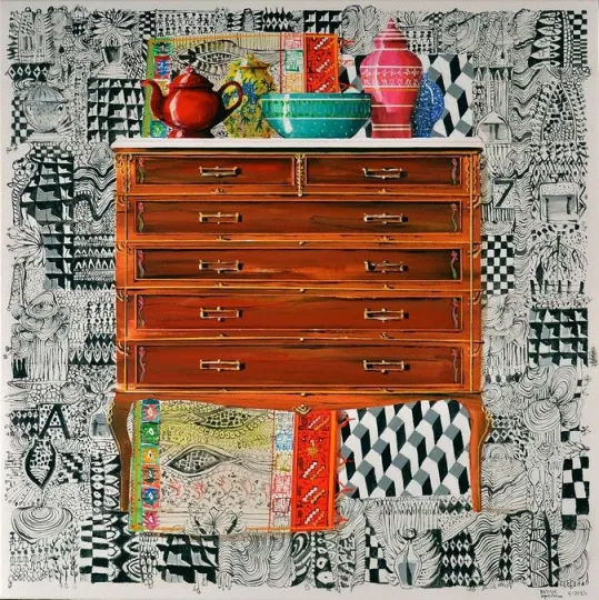 Ο καλλιτέχνης μετατρέπει τα «άψυχα» αντικείμενα σε ένα ζωντανό εικαστικό ημερολόγιο. Φλιτζάνια, υφάσματα, σερβίτσια, μικροέπιπλα ανακαλούν αναφορές στις δεκαετίες του ’60 και του ’70, χωρίς όμως να λειτουργούν απλώς ως φορείς νοσταλγίας. Η έκθεση επανατοποθετεί τα αντικείμενα ως δομικά στοιχεία σε μια αφήγηση για την ταυτότητα και τον χρόνο. Είναι ένας τρόπος να εξεταστεί «τι κουβαλάει το αντικείμενο μέσα μας».