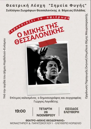 Η εκδήλωση, που πραγματοποιείται υπό την αιγίδα της Αντιδημαρχίας Πολιτισμού, Εθελοντισμού και Πολιτικής Προστασίας, εντάσσεται στο πλαίσιο της συμπλήρωσης 100 χρόνων από τη γέννηση του αγαπημένου μουσικοσυνθέτη, αναδεικνύοντας τις σημαντικότερες στιγμές που σμίλευσαν την ιδιαίτερη σχέση και την αμοιβαία αγάπη που είχε ο Μίκης Θεοδωράκης για τη Θεσσαλονίκη και τους ανθρώπους της.