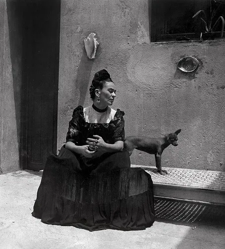 Lola Álvarez Bravo, Η Frida Kahlo με σκύλο σολοϊτσκουίντλι, στο Μπλε Σπίτι, περ. 1944