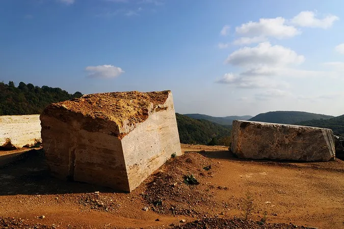 «Παρουσιάζουμε έξι φωτογραφίες, δύο σε κάθε ενότητα», εξηγεί ο φωτογράφος. «Οι πρώτες είναι από λατομεία. Για να φτιάξουμε τον πολιτισμό μας, η πέτρα ήταν από τις πρώτες ύλες στις οποίες ανέτρεξε ο άνθρωπος. Ένα υλικό που συνδέεται και με τη δουλειά μου ως ορυκτολόγου. Οι εικόνες δείχνουν το τοπίο όπως το διαμορφώνει η εξόρυξη».