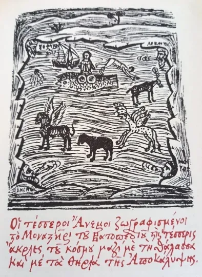Η καλλιτεχνική γλώσσα που διαμόρφωσε ο Φώτης Κόντογλου αντλεί από τις μεγάλες μορφές της βυζαντινής αγιογραφίας όπως ο Μανουήλ Πανσέληνος, ο Θεοφάνης ο Κρης και ο Φράγκος Κατελάνος. Ο ίδιος ο ζωγράφος είχε περιγράψει με συγκίνηση την εμπειρία του στο Άγιον Όρος: «Δεν περίμενα να έβρω μια τέχνη τόσο τέλεια μέσα στις εκκλησιές των μοναστηριών. Απ’ όσα είχα διαβάσει για τη βυζαντινή τέχνη είχα λάβει την ιδέα πως η τέχνη ετούτη είναι άξια μικρότερης προσοχής παρά εκείνη της ιταλικής Αναγέννησης. Μα ο καθένας μπορεί να κρίνει απ’ τα λιγοστά κομμάτια που δίνω εδώ πως βρίσκουνται στον Άθωνα ζωγραφιές της πιο σπάνιας τελειότητος, όπως λόγου χάρη ο αρχάγγελος Γαβριήλ και ο Μερκούριος του Κατελλάνου».