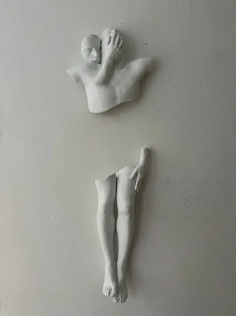 Στην τρέχουσα έκθεση, όμως, το βίωμα ήταν διαφορετικό. «Αυτό που τη δημιούργησε ήταν ένας έρωτας που βίωσα και είδα πώς άλλαξε ολόκληρος ο τρόπος με τον οποίο δημιουργούσα. Στην προηγούμενη έκθεση είχα καθαρά γεωμετρικά, αφαιρετικά γλυπτά, ενώ τώρα είναι πολύ πιο ρεαλιστικά. Έχει ξαναμπεί η ανθρώπινη φόρμα μέσα στο έργο».
