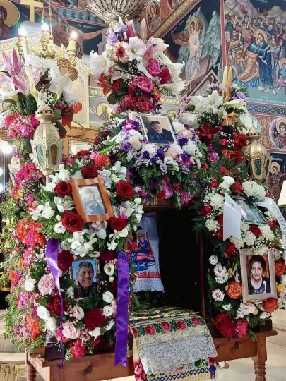 Στεφάνια και φωτογραφίες με τους νεκρούς στον Επιτάφιο