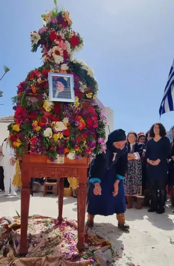 «Αργότερα, επειδή είχαμε και πάρα πολλούς ανθρώπους που μετανάστευσαν και θάφτηκαν σε ξένα χώματα, άρχισε το έθιμο με τις φωτογραφίες. Δηλαδή βάζουμε πάνω στον Επιτάφιο τη φωτογραφία του νεκρού μας. Θα πρέπει να πούμε ότι ο νεκρός θα πρέπει να είναι μέσα στο έτος πεθαμένος. Εάν είναι νέος μπορεί να τον βάλουμε και δεύτερη χρονιά στον Επιτάφιο. Έχουμε δηλαδή φρέσκο πένθος κατά κάποιο τρόπο», λέει.