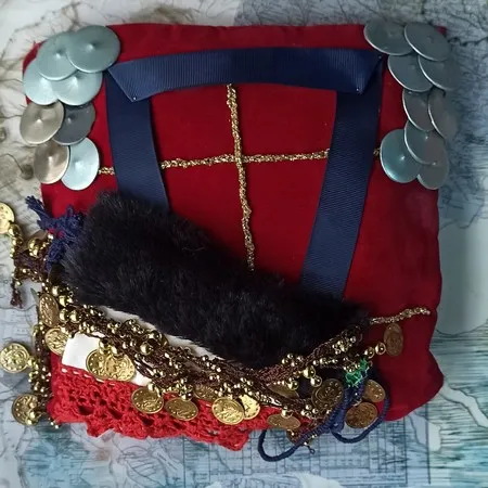 Η στολή του Μακεδονομάχου Γεωργίου Ρουμπέση (Καπετάν Τζαβάρα), γυναικεία παραδοσιακή φορεσιά από την Αλεξάνδρεια Ημαθίας (Γιδάς), γυναικεία φορεσιά του Μοριχόβου και τμήμα της ενδυμασίας της Πασχαλίνας Τοπαρλάνη από το Μελισσοχώρι (Μπάλτζα), καθώς και διάφορα ακόμη λαογραφικά αντικείμενα, αποτέλεσαν έμπνευση για τους συμμετέχοντες στην έκθεση. Οι καλλιτέχνες δούλεψαν με ποικίλα μέσα—ζωγραφική, γλυπτική, ύφανση, κεντητική, χάραξη, κοσμηματοποιία—και με υλικά όπως το ύφασμα, η κλωστή, το χαρτί, οι χάντρες, ο γύψος και το κερί.