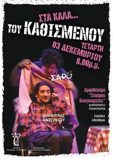 Την Τετάρτη 3 Δεκεμβρίου, στις 8.00 μ.μ., στο Αμφιθέατρο «Σταύρος Κουγιουμτζής» του Δημαρχείου Πανοράματος, η παράσταση “Στα Καλά του Καθισμένου”, ανεβαίνει στη σκηνή. Ένα έργο που μιλά αφοπλιστικά για την αναπηρία, την καθημερινότητα, την υπέρβαση και τη δύναμη της προσωπικής ματιάς. Η παράσταση πραγματοποιείται με ελεύθερη είσοδο, ώστε όλοι οι δημότες να έχουν τη δυνατότητα να την απολαύσουν.