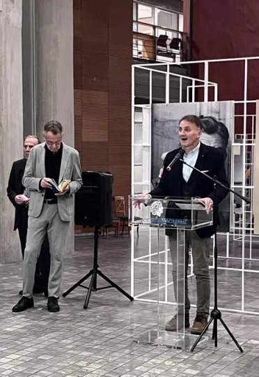 Αναφερόμενος στη βαθιά σχέση του ποιητή με την πόλη, υπογράμμισε: «Ο Μανόλης Αναγνωστάκης, κορυφαίος εκπρόσωπος της πρώτης μεταπολεμικής γενιάς των μεγάλων ποιητών, γεννήθηκε στη πολυπολιτισμική Θεσσαλονίκη πριν από εκατό χρόνια, μα η φωνή του παραμένει μέχρι σήμερα ζωντανή, καθαρή, σχεδόν σπαρακτικά επίκαιρη. Είναι ο δικός μας Μανόλης».