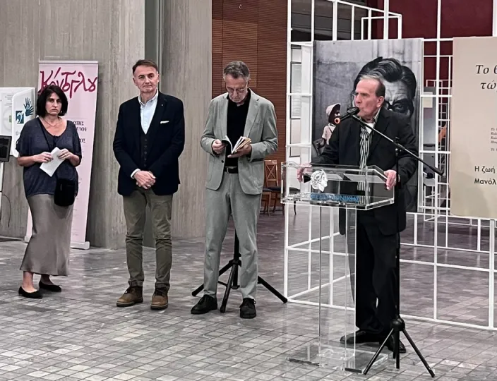 «Ως έναν άνθρωπο που δεν έγραψε για να τον θυμόμαστε, αλλά για να μας θυμίζει ποιοι είμαστε, τι σημαίνει να αγωνίζεσαι, τι σημαίνει να παραμένεις άνθρωπος, μέσα στις πιο δύσκολες εποχές», χαρακτήρισε τον Μανόλη Αναγνωστάκη ο κ. Αγγελούδης.