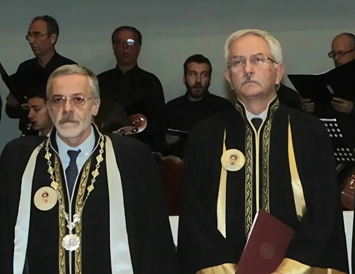Ο καθηγητής στο τμήμα Φιλολογίας Γιάννης Τζιφόπουλος (αριστερά) και ο Ομότιμος Καθηγητής Ανωτέρας Γεωδαισίας και Χαρτογραφίας στην Πολυτεχνική Σχολή του ΑΠΘ Ευάγγελος Λιβιεράτος