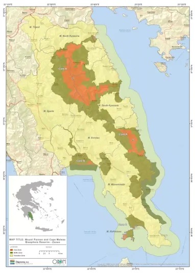Η περιοχή που εντάχθηκε στο διεθνές δίκτυο καλύπτει συνολική έκταση 516.412 εκταρίων, με πληθυσμό περίπου 80.000 κατοίκους, και περιλαμβάνει το οροπέδιο της Τεγέας, την κοιλάδα του Ευρώτα, την οροσειρά του Πάρνωνα έως το Ακρωτήριο Μαλέας, καθώς και την περιβάλλουσα θαλάσσια ζώνη.