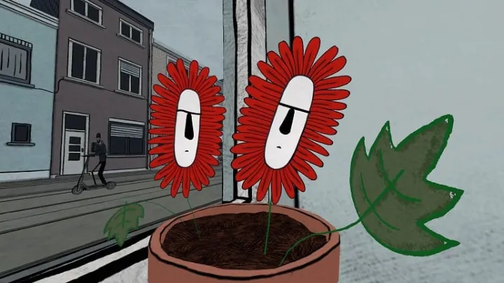 Η μεγάλη απόδραση (Γιόρεν Βαντενμπρούκε, Βέλγιο, 25'): Τρία βαριεστημένα γεράνια κάθονται σε περβάζι παραθύρου, λαχταρώντας τον έξω κόσμο, ενώ ο Πάτρικ παραμένει παγιδευμένος στη ρουτίνα του. Όταν κλέβουν το smartphone του και τον παρασύρουν σε μια ανταλλαγή φυτών, η ελευθερία φέρνει μαζί της σκληρές αλήθειες και υπαρξιακές κρίσεις. Μια εξερεύνηση της ασφάλειας που φέρνει η συνήθειαέναντι της αβεβαιότητας της αλλαγής.