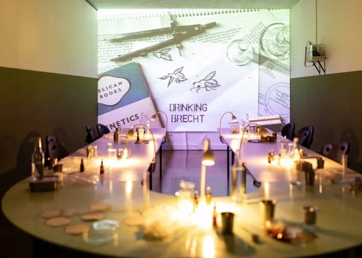 Όμως η πιο συναρπαστική έκπληξη του φετινού προγράμματος του ΦΚΘ δεν βρίσκεται στην αίθουσα προβολών. Στο Δυτικό Φυλάκιο Εισόδου της Πύλης 1, η πολυμεσική καλλιτέχνιδα Sister Sylvester παρουσιάζει το Drinking Brecht, μια εγκατάσταση που συνδυάζει τον Μπέρτολτ Μπρεχτ, ένα θεατρικό καπέλο που δεν πλύθηκε και πειράματα μοριακής βιολογίας.